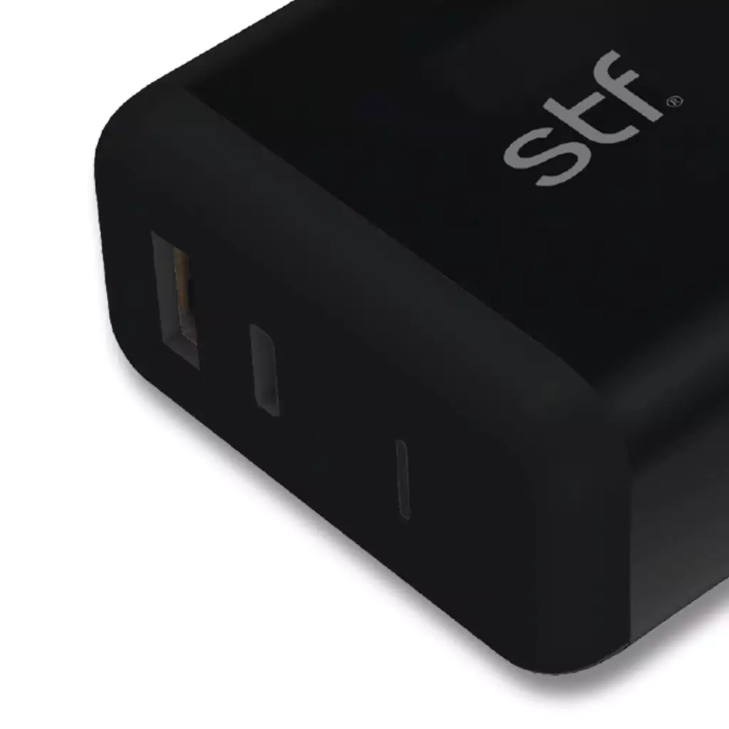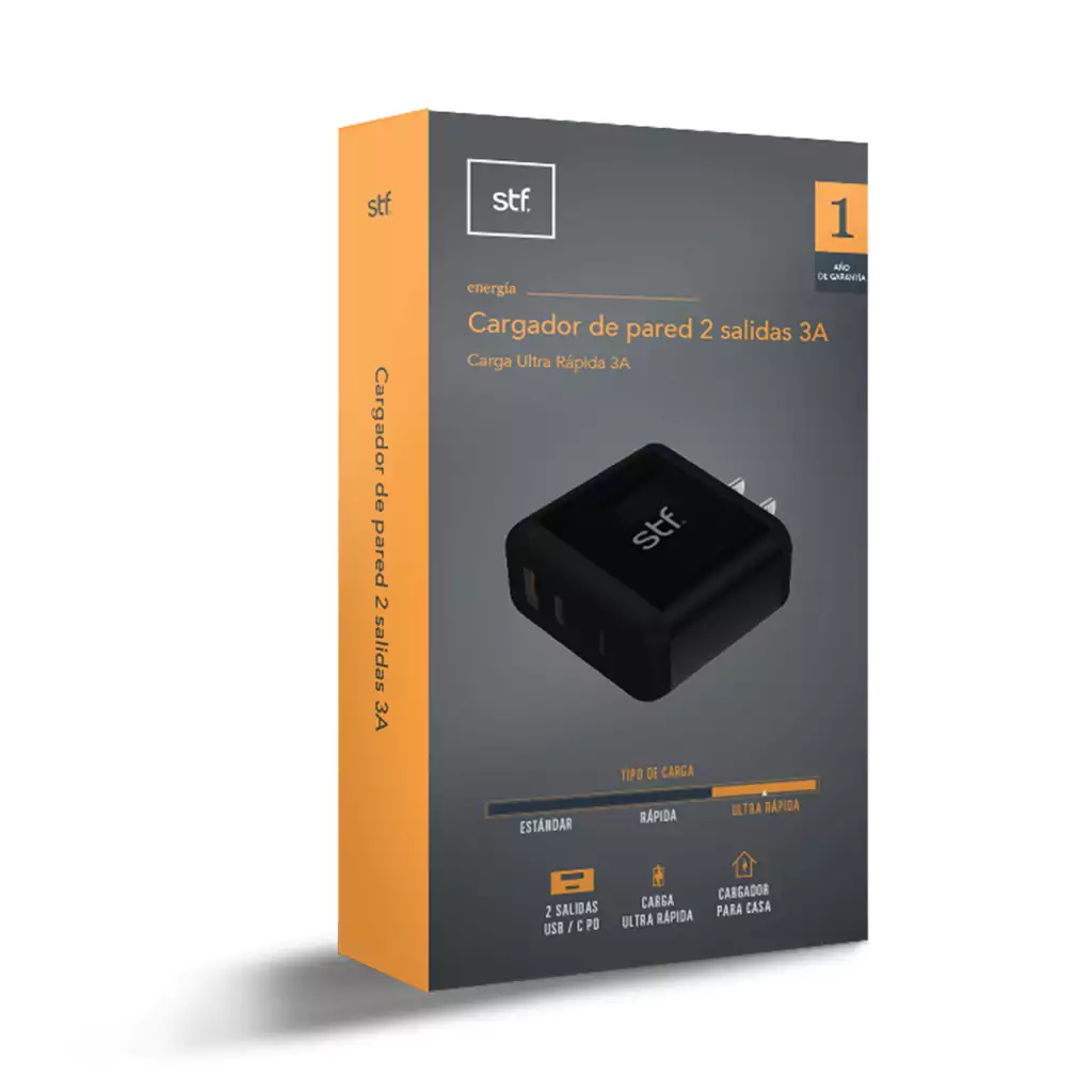 El cargador de pared que te rescatará en cada lugar que estés con carga ultra rápida, dos salidas: USB y C, para que todos tus dispositivos siempre estén conectados.