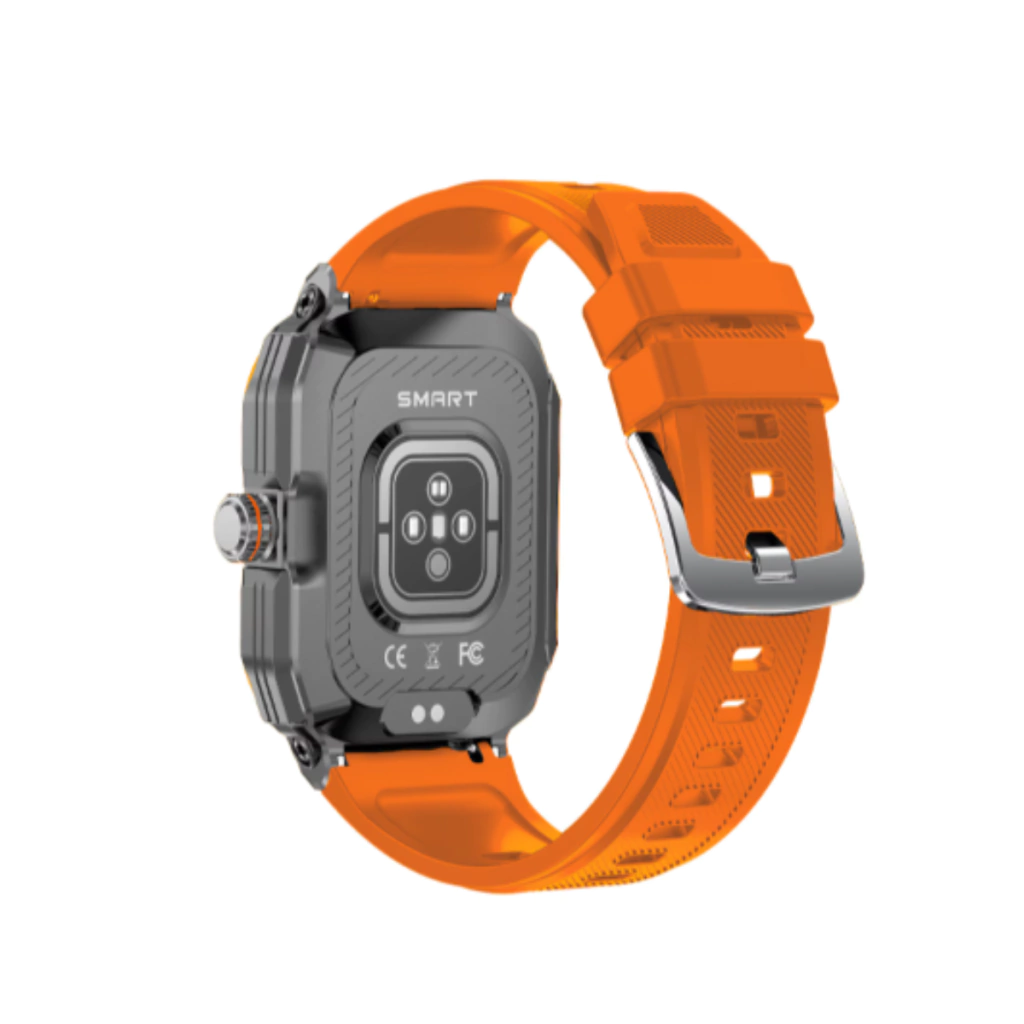 Diseño Vibrante y Deportivo: Con su color naranja brillante, este smartwatch destaca por su estilo energético y juvenil, ideal para quienes buscan un diseño llamativo y moderno.