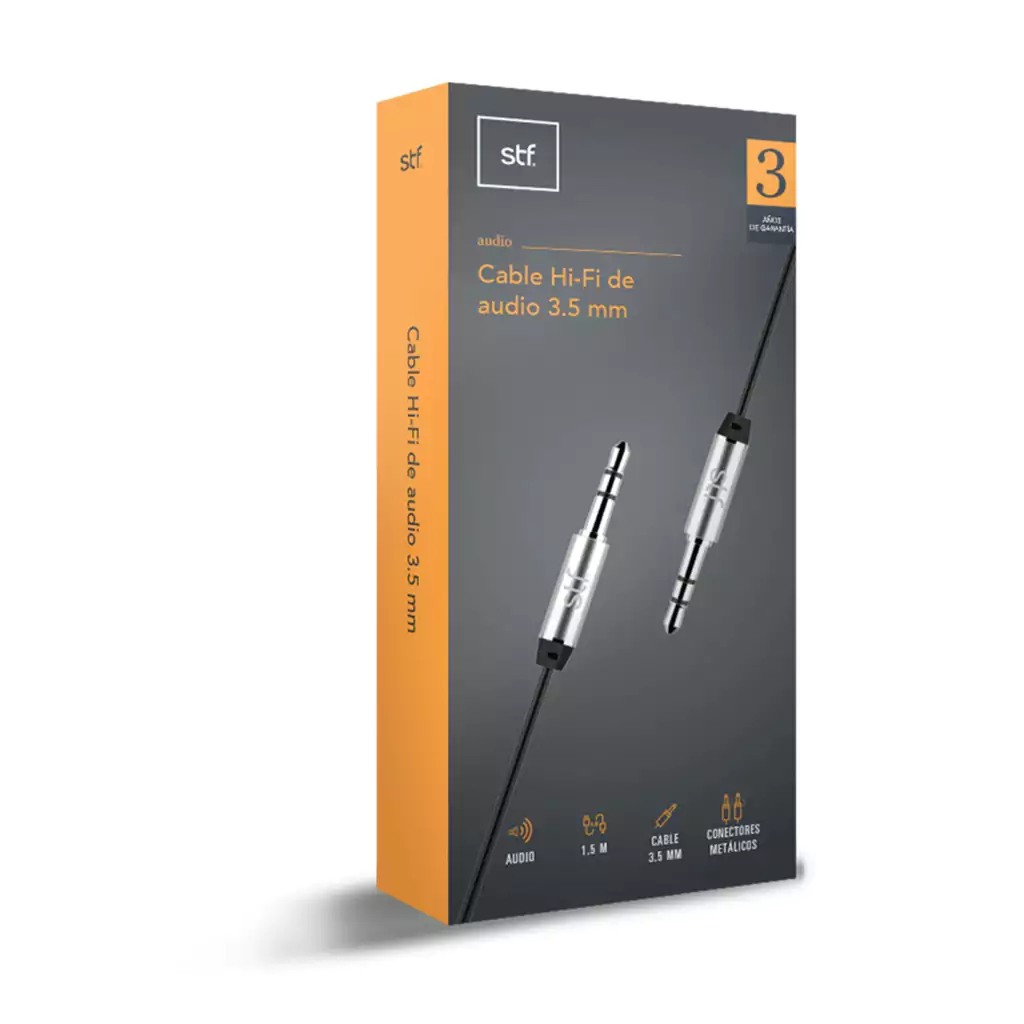 El cable de entrada 3.5 mm te la posibilidad de conectar dos dispositivos para escuchar música, conectar un micrófono o alguna otra función que necesites, mide un metro de largo. Es un cable práctico, indispensable y útil para complementar tus gadgets.